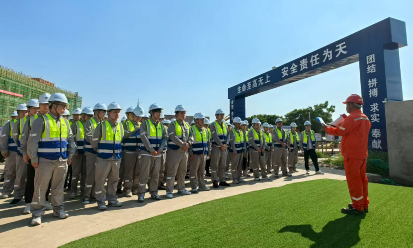 作為新員工入職培訓的關鍵環節,此次現場觀摩是課堂專業知識培訓的重要補充,旨在幫助新員工將理論與實踐融合,提前感受“從教室到職場、從學生到職場人”的轉變。安全是進入施工現場的第一課,在各項目現場,安全經理對新員工進行入場前的安全交底,明確“安全第一,一切行動聽指揮”的紀律要求,并特別提醒做好高溫防暑措施,筑牢安全防線。
