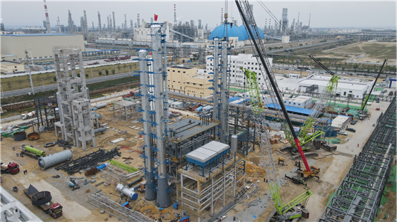 華南公司揭陽東粵化學項目成功吊裝首批大型塔器